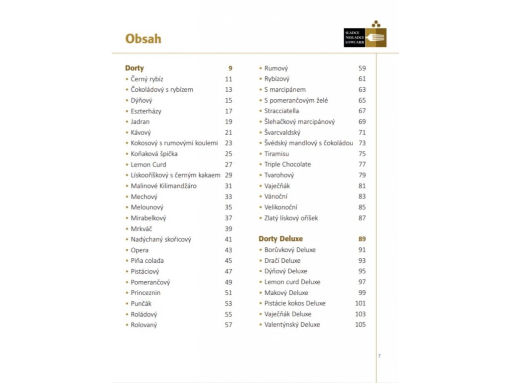 Kniha obsahuje více jak padesát receptů. Dorty všech možných chutí a barev bez lepku, bez cukru, s nízkým obsahem sacharidů. Suroviny většinou najdete ve své spíži, jen sladidlo budete muset dokoupit. Recepty jsou psané tak, aby je zvládl každý. Jsou to vesměs jednoduché dorty s efektním vzhledem. Trochu náročnější dorty, co do pracnosti, na vás čekají v sekci Dorty Deluxe.